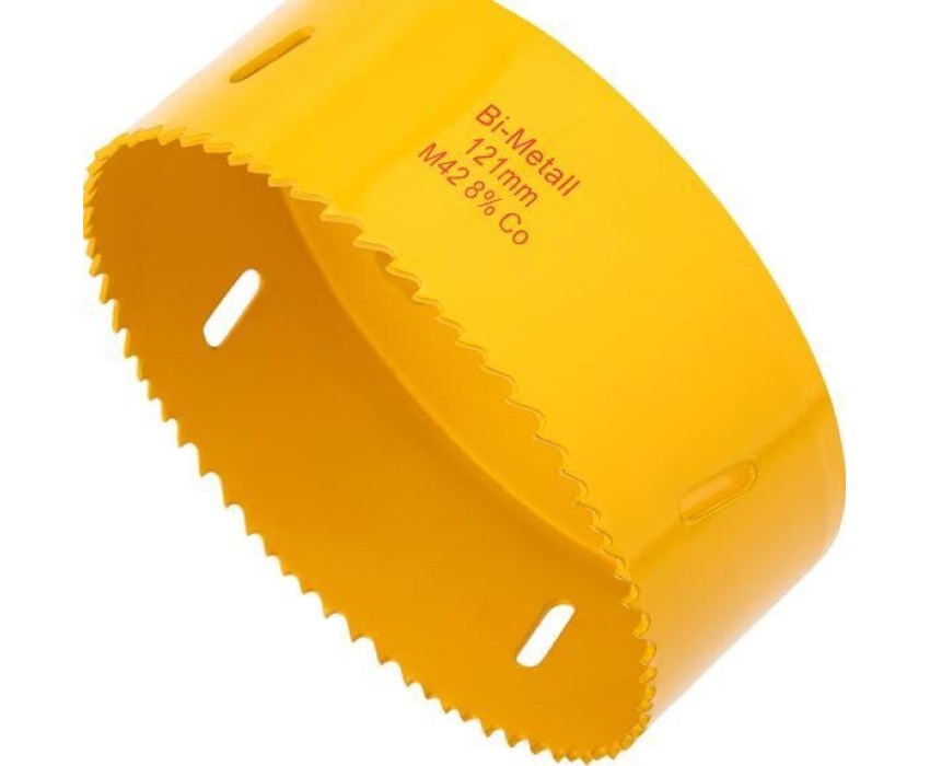 Коронка Bimetal используется во время электромонтажных работ и прокладки коммуникаций. Позволяет получить отверстия большого диаметра в таких материалах как пластик, дерево, сталь, металл и т.д. Применяется совместно с дрелями, перфораторами и стационарными станками. Тело коронки выполнено из инструментальной стали, а зубья с переменным шагом 4-6 мм изготовлены из быстрорежущей стали Р6М5К8, устойчивой к перегреву. Благодаря качеству используемых материалов оснастка отличается долгим ресурсом работы и высокой производительностью. Конструкция оснащена отверстиями, которые компенсируют деформации при перегреве, а также отводят строительную пыль и шлам. Коронка используется с шестигранным хвостовиком для сверления при помощи дрели или с хвостовиком SDS PLUS для сверления при помощи перфоратора. Хвостовики приобретаются отдельно. Сверление металла/стали необходимо осуществлять в безударном режиме с применением СОЖ.