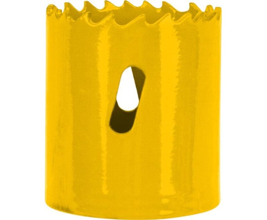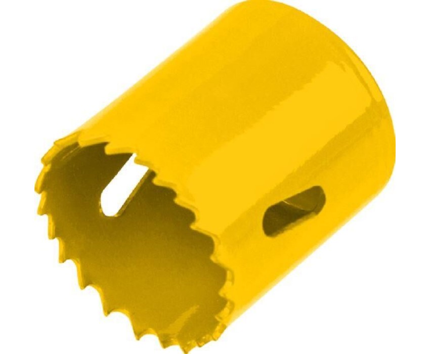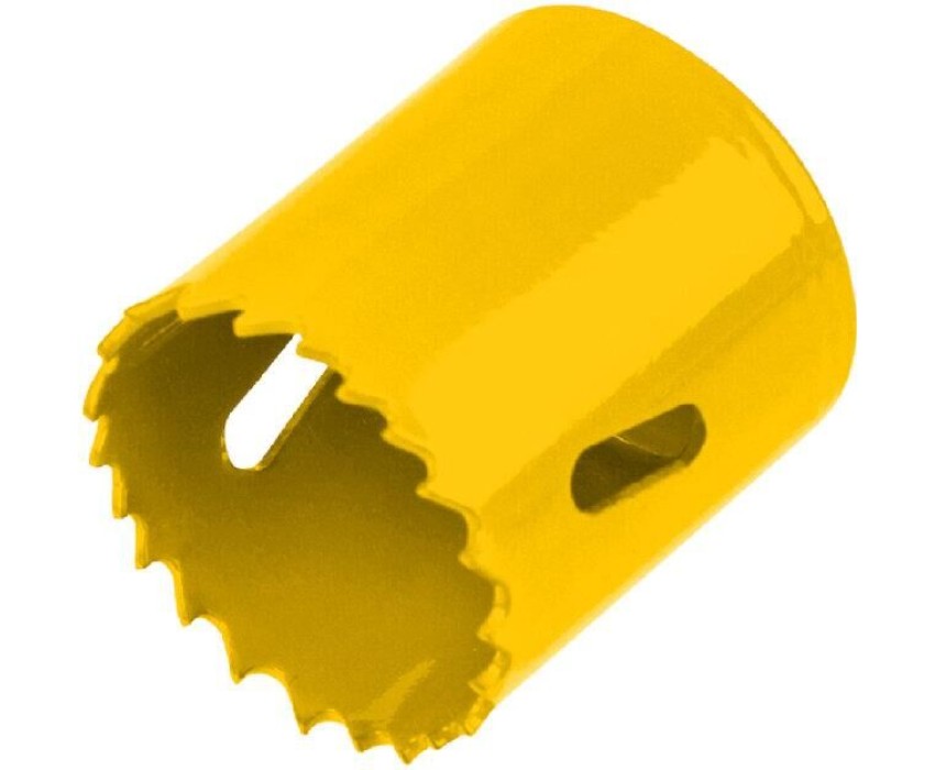 Коронка Bimetal используется во время электромонтажных работ и прокладки коммуникаций. Позволяет получить отверстия большого диаметра в таких материалах как пластик, дерево, сталь, металл и т.д. Применяется совместно с дрелями, перфораторами и стационарными станками. Тело коронки выполнено из инструментальной стали, а зубья с переменным шагом 4-6 мм изготовлены из быстрорежущей стали Р6М5К8, устойчивой к перегреву. Благодаря качеству используемых материалов оснастка отличается долгим ресурсом работы и высокой производительностью. Конструкция оснащена отверстиями, которые компенсируют деформации при перегреве, а также отводят строительную пыль и шлам. Коронка используется с шестигранным хвостовиком для сверления при помощи дрели или с хвостовиком SDS PLUS для сверления при помощи перфоратора. Хвостовики приобретаются отдельно. Сверление металла/стали необходимо осуществлять в безударном режиме с применением СОЖ.
