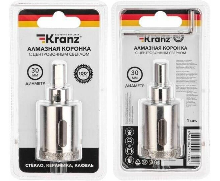 Коронка KRANZ (KR-92-0010) Коронка алмазная 30мм по керамограниту с центровочным сверлом