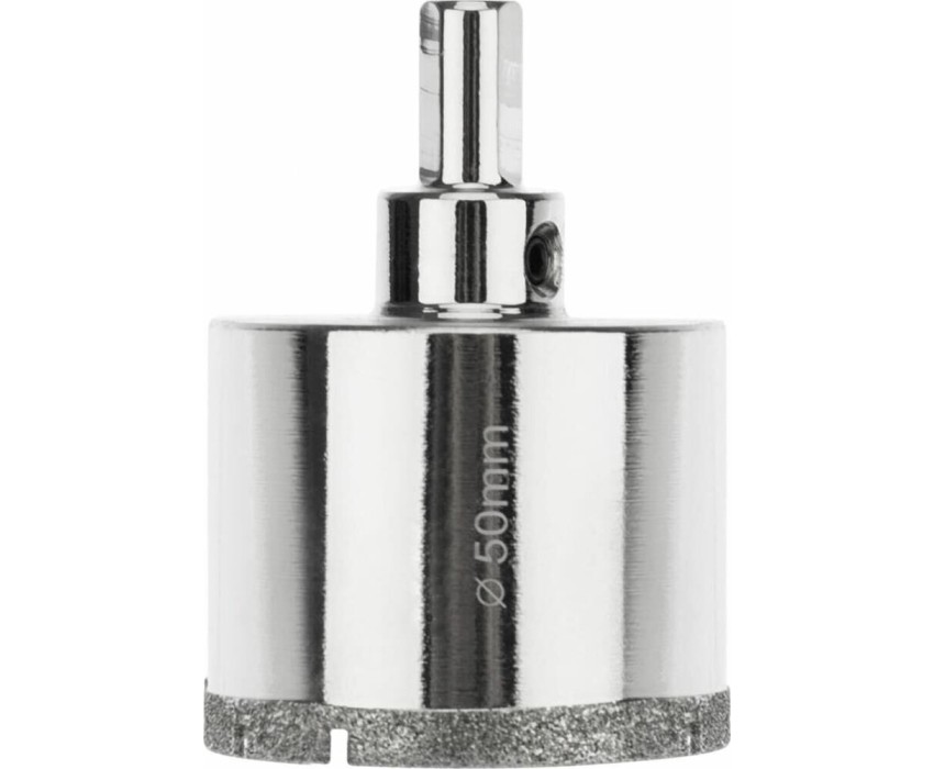 Алмазная коронка диаметром 50 мм используется при сверлении керамогранита, керамики, стекла. Наличие центровочного сверла обеспечивает точное позиционирование коронки на поверхности и помогает избежать смещения во время работ. Покрытие алмазной коронки выполнено гальваническим способом в два слоя, что обеспечивает эффективное сверление и продолжительный рабочий ресурс инструмента. Равномерное распределение алмазов по режущей кромке гарантирует аккуратное сверление материала без трещин и сколов. Высота алмазного слоя в 6 мм обеспечивает высокую производительность, а трехгранный хвостовик – надежную фиксации в патроне. При использовании алмазных коронок для сверления отверстий необходимо охлаждение, которое достигается путем подачи воды в рабочую зону.