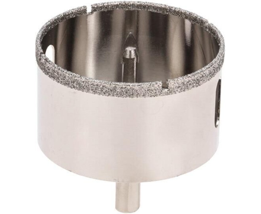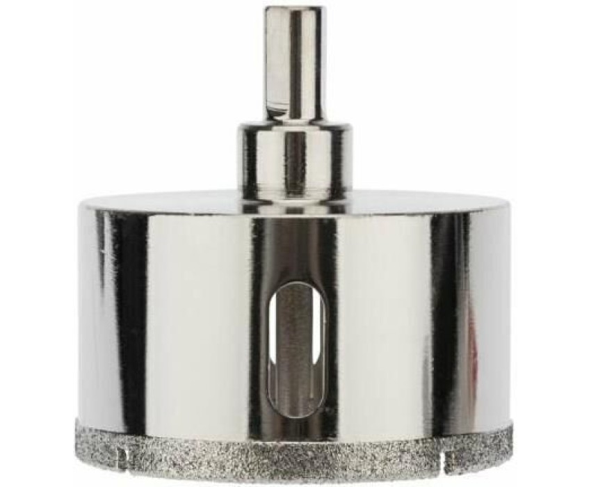 Алмазная коронка диаметром 70 мм используется при сверлении керамогранита, керамики, стекла. Наличие центровочного сверла обеспечивает точное позиционирование коронки на поверхности и помогает избежать смещения во время работ. Покрытие алмазной коронки выполнено гальваническим способом в два слоя, что обеспечивает эффективное сверление и продолжительный рабочий ресурс инструмента. Равномерное распределение алмазов по режущей кромке гарантирует аккуратное сверление материала без трещин и сколов. Высота алмазного слоя в 6 мм обеспечивает высокую производительность, а трехгранный хвостовик – надежную фиксации в патроне. При использовании алмазных коронок для сверления отверстий необходимо охлаждение, которое достигается путем подачи воды в рабочую зону.