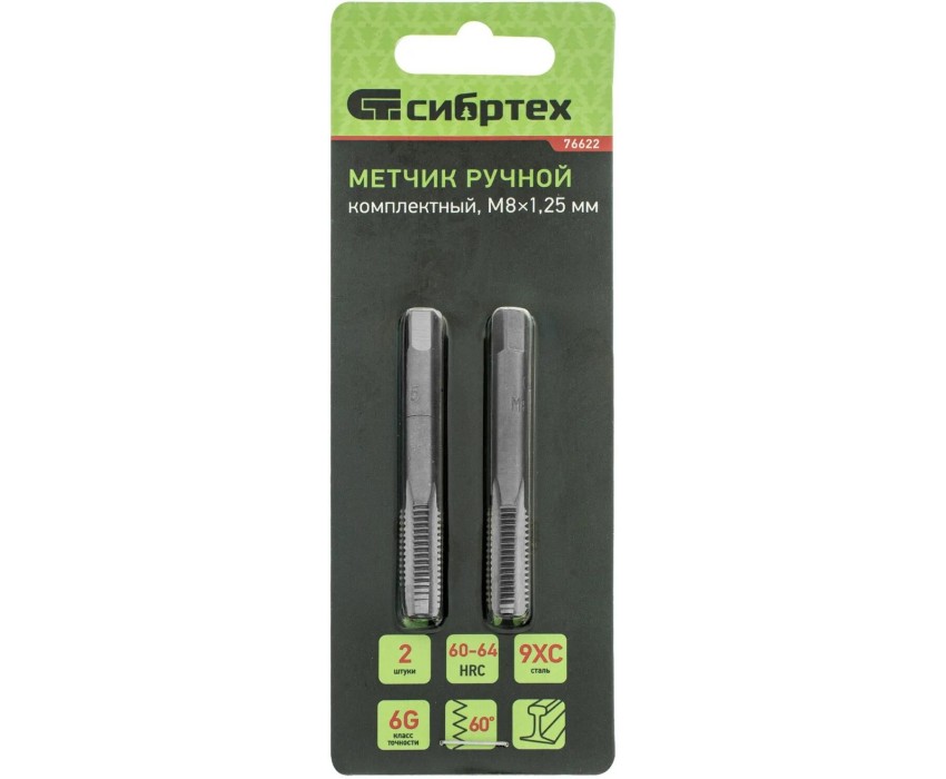 Ручной метчик Сибртех 76622 входит в комплект из 2 шт. и предназначен для нарезания внутренней резьбы диаметром М8 и с шагом 1,25 мм. Используется для работы со сквозными и глухими отверстиями. Устанавливается на метчикодержатель под посадочный квадрат 5 мм.