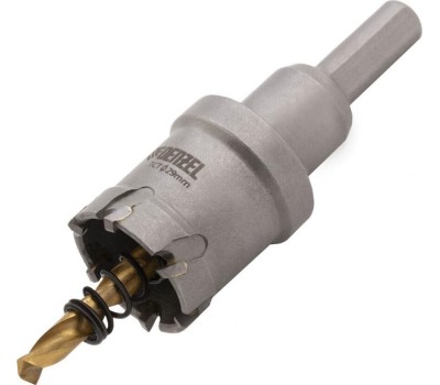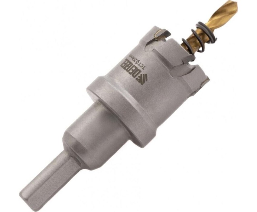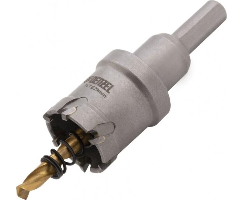 Твердосплавная коронка Denzel 724008 диаметром 29 мм используется для сверлильных работ по черным, цветным металлам, пластику и другим материалам. Позволяет получить отверстия большего диаметра в сравнении с обычным сверлом. Твердосплавные зубья легко выдерживают интенсивные нагрузки, поэтому коронка подходит не только для бытового, но и для профессионального применения.ПреимуществаПрочность — твердосплавные режущие пластины выполнены из сплава карбид-вольфрама, а корпус — из углеродистой стали.Эффективность — режущие пластины твердостью 91-92 HRC и центрирующее сверло из быстрорежущей легированной стали обеспечивают высокую скорость и качество засверливания.Высокая производительность — специальная пружина не допускает застревания шлама.Крепкая фиксация — трехгранный хвостовик не прокручивается в патроне.Надежность — коронка изготовлена на современном оборудовании методом электросварки.
