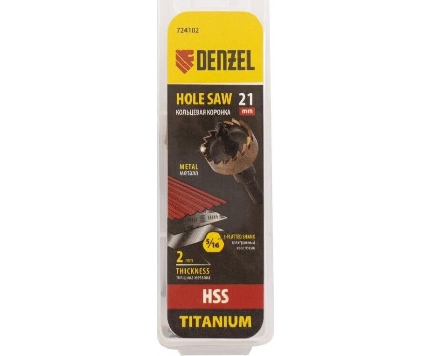 Коронка DENZEL Коронка по металлу HSS, 21 мм, нитридтитановое покрытие 724102