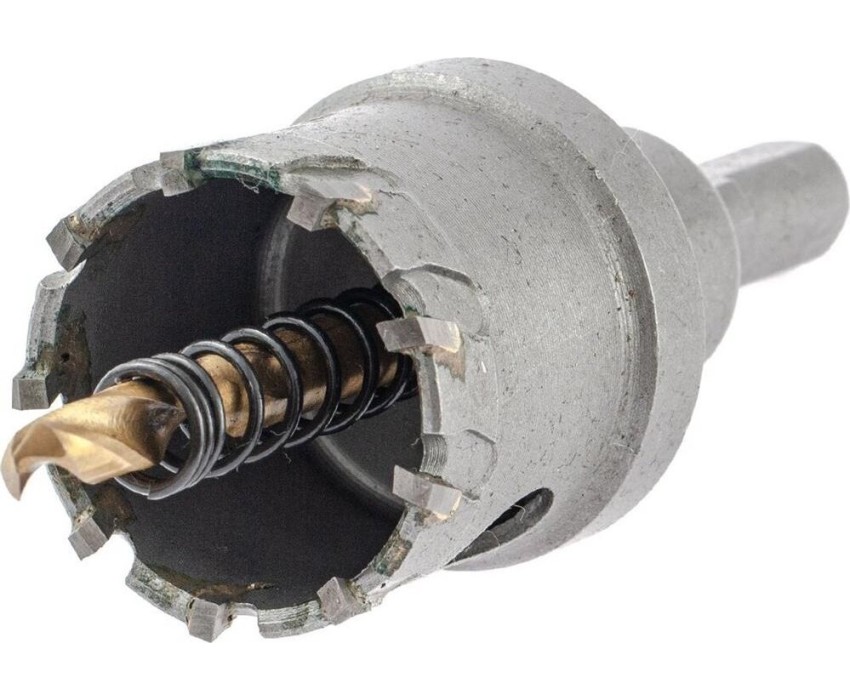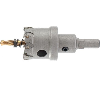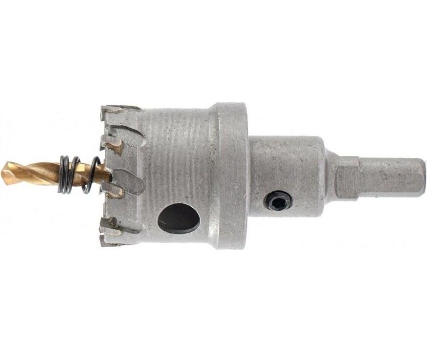 Твердосплавная коронка Denzel 724011 диаметром 35 мм используется для сверлильных работ по черным, цветным металлам, пластику и другим материалам. Позволяет получить отверстия большего диаметра в сравнении с обычным сверлом. Твердосплавные зубья легко выдерживают интенсивные нагрузки, поэтому коронка подходит не только для бытового, но и для профессионального применения.ПреимуществаПрочность — твердосплавные режущие пластины выполнены из сплава карбид-вольфрама, а корпус — из углеродистой стали.Эффективность — режущие пластины твердостью 91-92 HRC и центрирующее сверло из быстрорежущей легированной стали обеспечивают высокую скорость и качество засверливания.Высокая производительность — специальная пружина не допускает застревания шлама.Крепкая фиксация — трехгранный хвостовик не прокручивается в патроне.Надежность — коронка изготовлена на современном оборудовании методом электросварки.