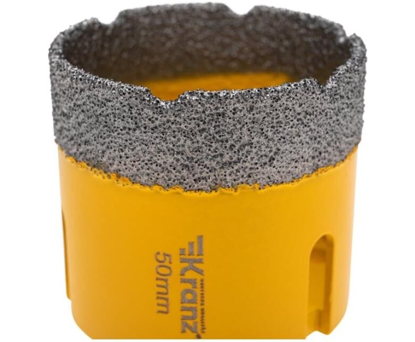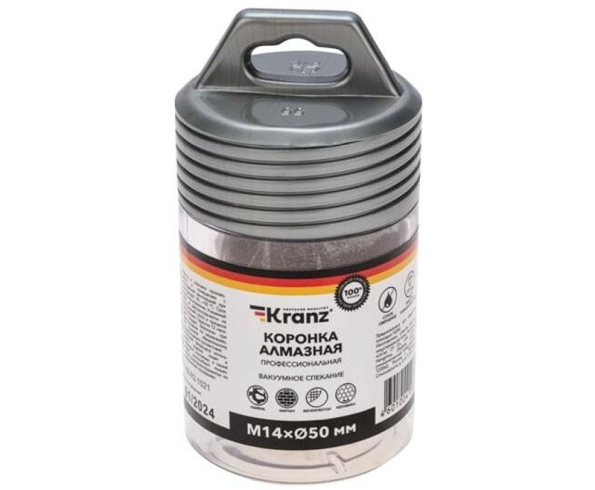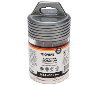 KRANZ Коронка алмазная профессиональная по керамограниту и железобетону М14, вакуумное спекание, 50мм, для УШМ