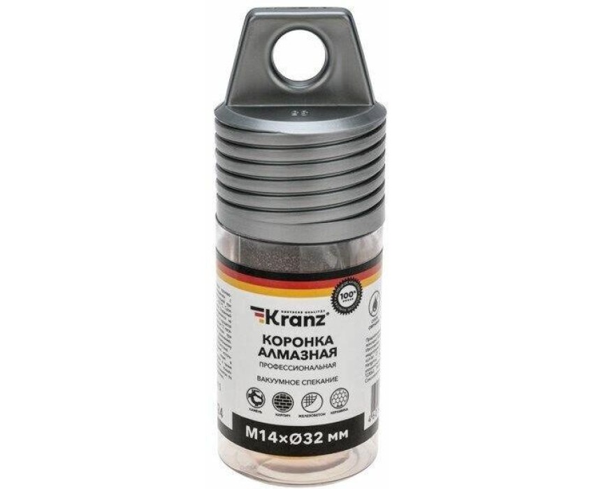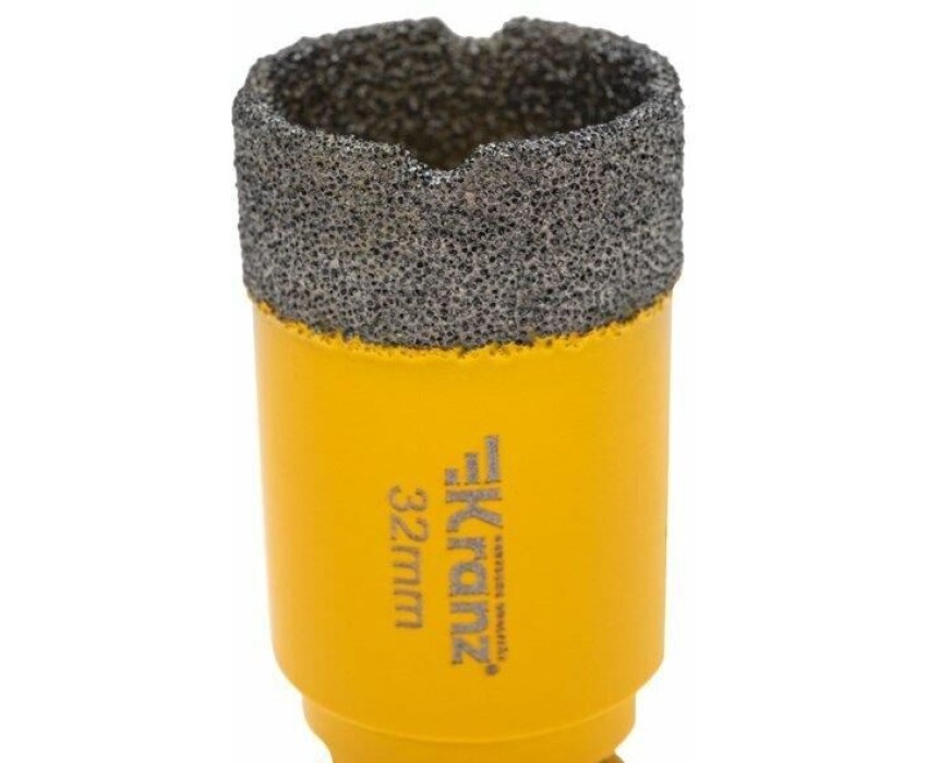 KRANZ Коронка алмазная профессиональная по керамограниту и железобетону М14, вакуумное спекание, 32мм, для УШМ
