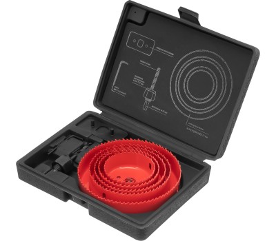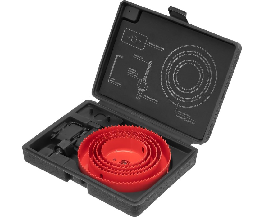 Набор кольцевых пил по дереву Matrix 704715 состоит из 8 предметов и включает 5 коронок диаметром 64-127 мм. Они предназначены для вырезания круглых отверстий глубиной до 27 мм в дереве, фанере, ДСП, ДВП, а также гипсокартоне и пластике. Пилы устанавливаются на электродрель. В комплект поставки входит проставка для защиты коронки от проворота, что повышает скорость и качество сверления. Набор будет полезен при установке выключателей, электророзеток и элементов освещения, а также при прокладке трубопроводов. Преимущества Прочность и долговечность — кольцевые пилы из углеродистой стали устойчивы к повреждениям. Высокая скорость сверления — зубья коронок разведены, что облегчает удаление стружки. Получение отверстий правильной формы — направляющее сверло упрощает центровку пилы. Продуманная комплектация — в набор входит шестигранный ключ 2,5 мм, позволяющий надежно зафиксировать сверло в державке. Удобное хранение и транспортировка — набор поставляется в удобном пластиковом кейсе с ложементом.