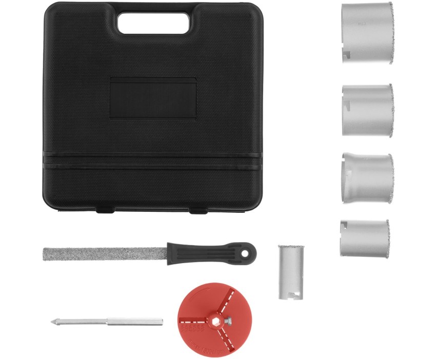 Набор коронок Matrix 72842 диаметром 33-53-67-73-83 мм, с 6-гранным хвостовиком и напильником, в пластиковом боксе, предназначен для сверления керамической плитки, кирпича, ячеистого бетона и пенобетона, газосиликата, гипсокартона. Оснастки устанавливаются на дрели и шуруповерты. Центрирующее сверло не допускает смещения коронок, обеспечивая точность работы. Рекомендуется использовать водяное охлаждение и работать в безударном режиме для продления срока службы коронок. Преимущества Прочность и долговечность — рабочие части коронок и напильника, а также твердосплавная пластина сверла имеют напыление из карбида вольфрама ВК6. Быстрая подготовка к работе — в комплект входит универсальная державка для установки коронок. Легкий поиск нужной оснастки — в набор входят коронки диаметром 33, 53, 67, 73, 83 мм с четкой маркировкой размера на корпусе. Надежная фиксация — центрирующее сверло с 6-гранным хвостовиком не проворачивается в патроне. Дополнительные возможности — напильник позволяет расширить спектр выполняемых работ. Удобное хранение и транспортировка — набор поставляется в пластиковом боксе.