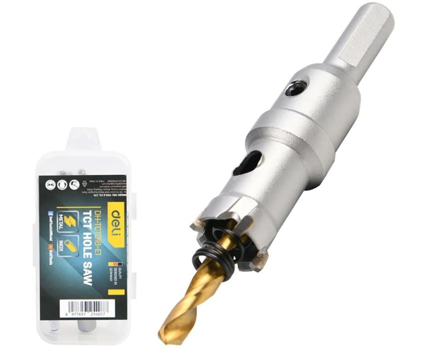 DELI Коронка по металлу твердосплавная с центрирующим сверлом DH-TCT018-E1 диаметр 18мм, шестигранный хвостовик