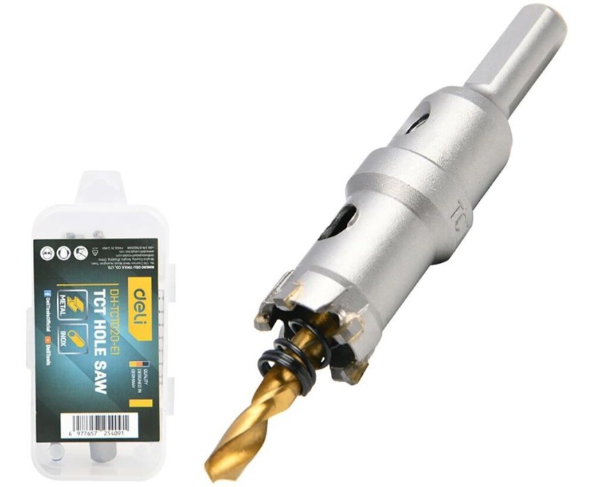 DELI Коронка по металлу твердосплавная с центрирующим сверлом DH-TCT020-E1 диаметр 20мм, шестигранный хвостовик
