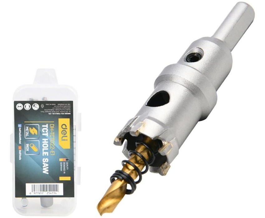 DELI Коронка по металлу твердосплавная с центрирующим сверлом DH-TCT022-E1 диаметр 22мм, шестигранный хвостовик