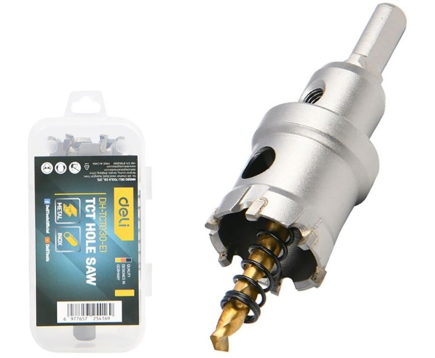 DELI Коронка по металлу твердосплавная с центрирующим сверлом DH-TCT030-E1 диаметр 30мм, шестигранный хвостовик