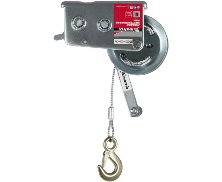Лебедка MATRIX Лебедка шестеренчатая, тяга 0.8 т, тросовая 522735