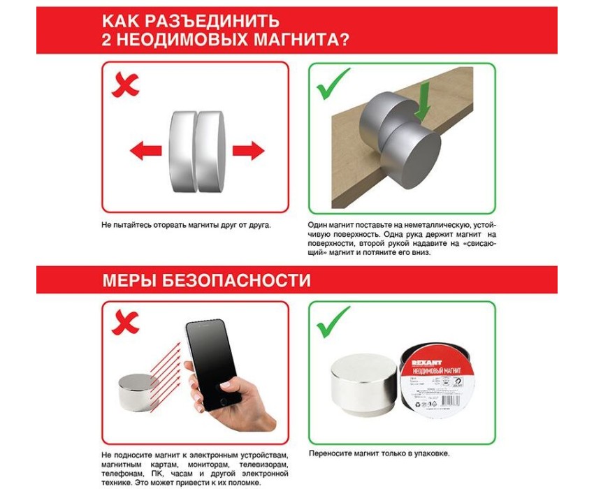 Неодимовый магнитный диск REXANT с зенковкой состоит из сплава неодима, бора и железа. Легко крепится шурупом или саморезом к поверхностям из различных материалов: деревянных, пластиковых, железных, стеклянных и пр. Такой способ крепежа надежен и в то же время мобилен: широко применяется в рекламной сфере. Известен своей мощностью притяжения и высокой стойкостью к размагничиванию. Применяется в различных областях промышленности и быту. С его помощью можно: - зафиксировать жалюзи; - установить ручку на двери сауны; - закрепить баннер на стене или автомобильный кузов; - создать застежки на портфелях, кейсах, чемоданах, сумках; изготовить сувенирную продукцию; - и т. д. Характеристики: Длина: 20 мм Ширина: 10 мм Толщина: 3 мм Внутренний максимальный диаметр: 6.5 мм Внутренний минимальный диаметр: 3 мм Сила сцепления: 3 кг Марка сплава: N42 Покрытие: Никель (Ni) Рабочая температура: -60...+80 °С Вес: 5 г Количество в упаковке: 2 шт. Преимущества: Универсальность применения Выполнен из прочных долговечных материалов Низкая подверженность к размагничиванию (0.1% раз в 10 лет)