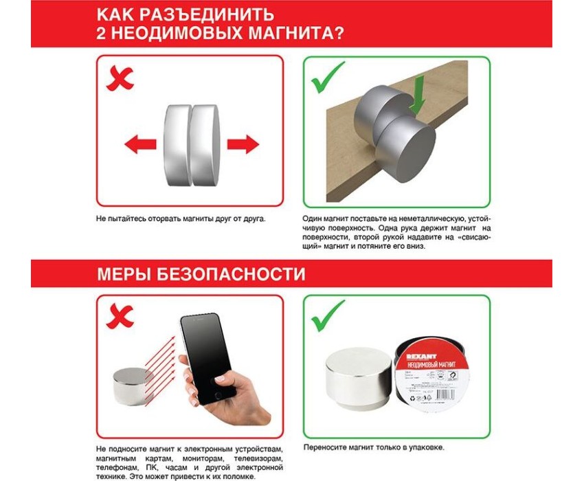 Постоянный редкоземельный неодимовый магнит REXANT состоит из сплава неодима, бора и железа. Известен своей мощностью притяжения и высокой стойкостью к размагничиванию. Применяется в различных областях промышленности, медицины, в быту и электронике.