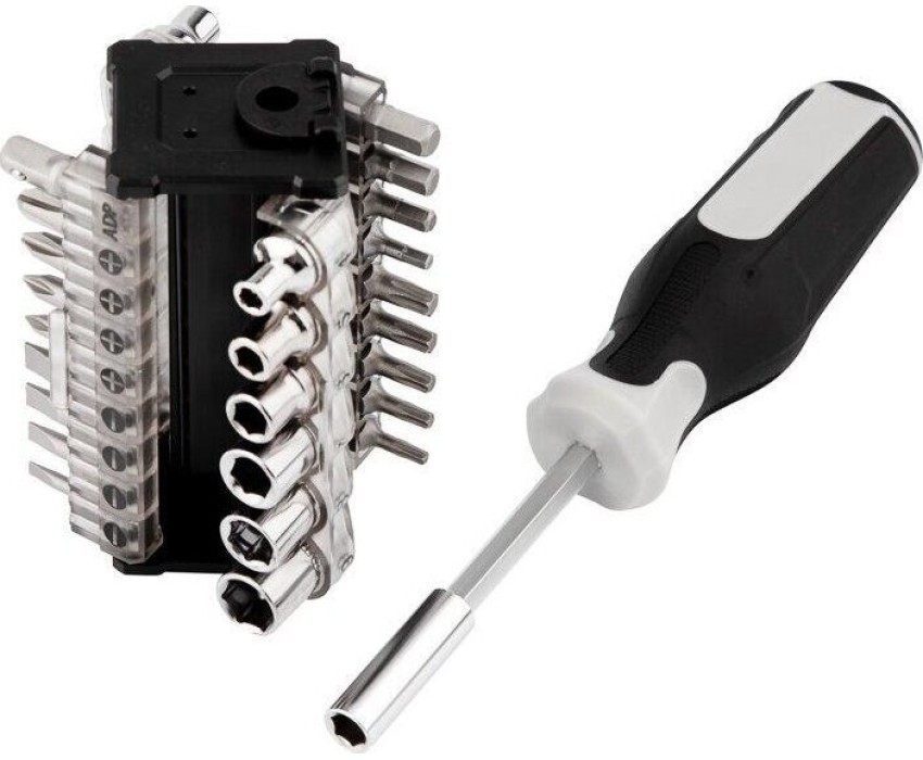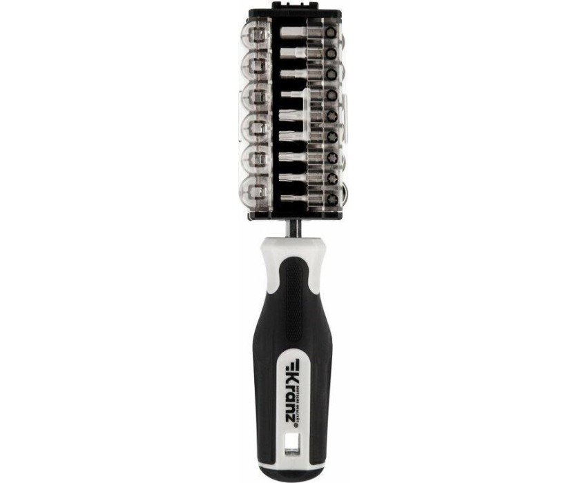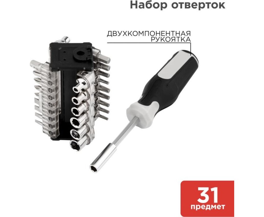 Набор отверток KRANZ, 31 предмет, предназначен для выполнения монтажных и демонтажных работ с резьбовыми соединениями. Биты набора выполнены из хромованадиевой стали. Магнитный держатель обеспечивает быструю замену и надежную фиксацию насадок. Твердость бит: 51-56 HRC Набор поставляется в кейсе, удобен в использовании и транспортировке, содержит 31 предмет: Шестигранная звезда: T10, T15, T20, T25, T27 Шестигранник: H3, H4, H5, H6 Крестовая: PH0, PH1, PH2, PH3 Шлицевая: SL3, SL4, SL5, SL6 Адаптер Головки: M3, M4, M5, M6, M7, M8, M9, M10, M11, M13