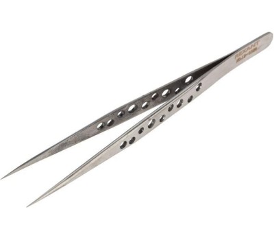 Стальной пинцет REXANT Airy используется для проведения манипуляций с различными небольшими предметами и деталями, такими как крепеж, шестеренки, марки, драгоценные камни и пр. Широко применяется в паяльных и ручных работах, сборочном производстве, филателии, ювелирном деле, робототехнике, промывке золота и т. д. Инструмент изготовлен из долговечной нержавеющей стали AISI 304, устойчивой к поражению коррозией. Корпус оснащен отверстиями, которые облегчают вес инструмента. Заостренные концы позволяют производить работы, требующие высокой точности. Оптимальная длина и небольшой вес пинцета делают работу наиболее комфортной.