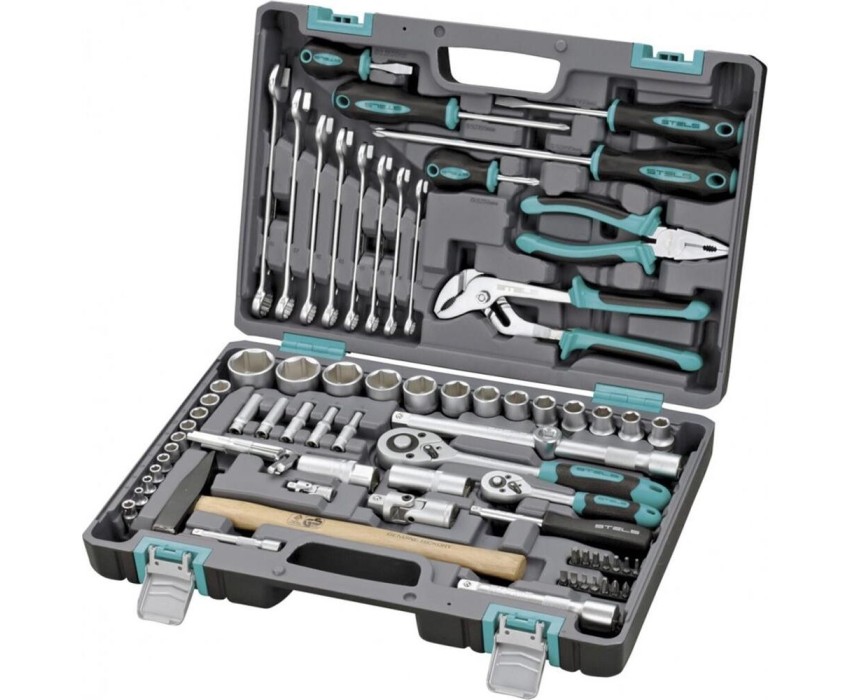 Набор инструмента STELS Набор инструментов, 1/2", 1/4", CRV, пластиковый кейс 76 предм.// 14104