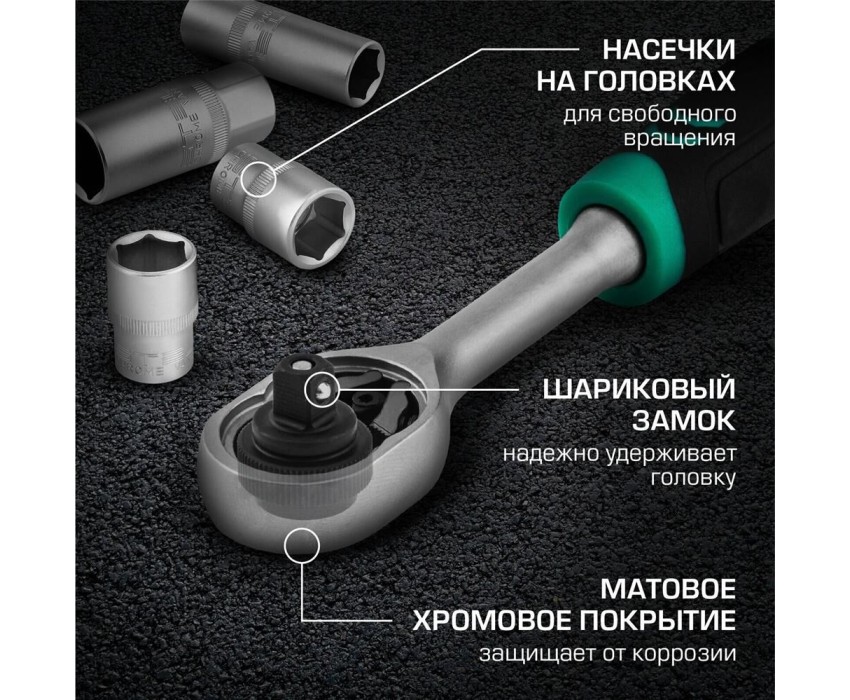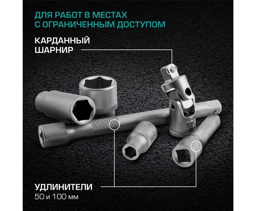 карданный шарнир 1/4", удлинитель 1/4": 50, отвертка-держатель 1/4", 100 мм, ключ трещоточный 1/4"