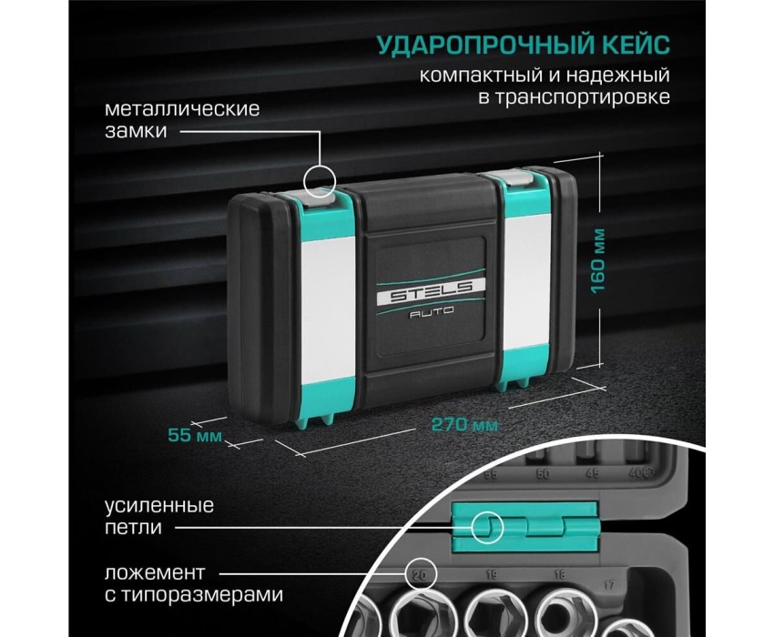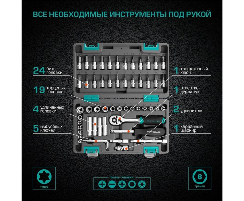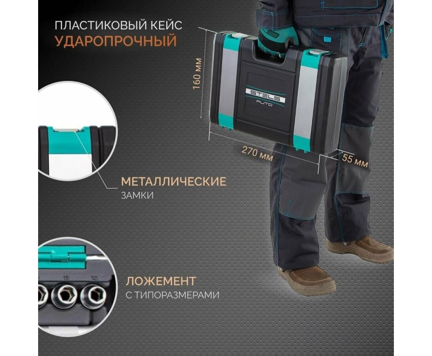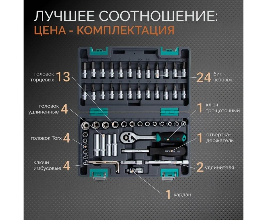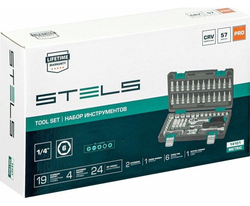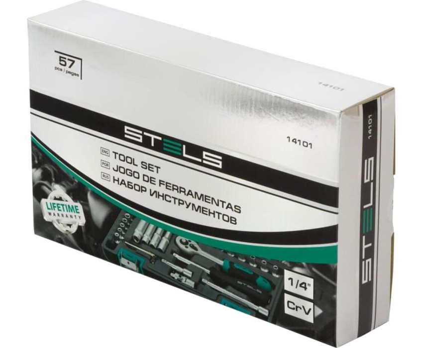 Набор инструмента STELS Набор инструментов, 1/4", CRV, пластиковый кейс 57 предм. 14101