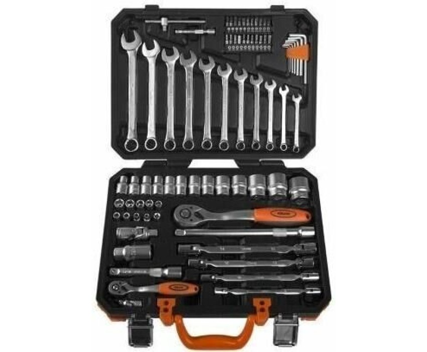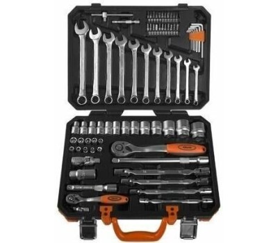 Количество предметов: 77 предметов. Набор бит Ph (крест), список: PH0, PH1, PH2, PH3. Набор бит Pz (крест), список: PZ1, PZ2, PZ3. Набор бит SL (шлиц), список: SL3, SL4, SL5.5, SL7. Набор бит H/HEX (шестигранник), список: H2, H3, H4, H5, H6. Другие инструменты/принадлежности: Ключи карданные двусторонние: 8х9, 10х11, 12х13, 14х15 мм. Набор бит Torx, список: T10, T15, T20, T25, T30. Габариты упаковки (ед) ДхШхВ: 0.39x0.08x0.28. Вес упаковки (ед): 6.17. Страна производства: Китай. Головки 1/2"DR, список: Головки торцевые: 10, 11, 12, 13, 14, 15, 17, 19, 22, 24, 27, 30, 32 мм Головка торцевая свечная, 21 мм. Головки 1/4"DR, список: Головки торцевые: 4, 5, 6, 7, 8, 9, 10, 11, 12 мм. Дополнительно в наборе, 1/2"DR: Адаптер для торцевых головок Рукоятка трещоточная, 72 зуба Вороток-удлинитель Т-образный Удлинитель: 125, 250 мм Шарнир карданный. Дополнительно в наборе, 1/4"DR: Рукоятка трещоточная, 72 зуба Вороток Т-образный Держатель бит 1/4" x 5/16” Удлинитель 75 мм Шарнир карданный. Комбинированные ключи, список: 7, 8, 9, 10, 11, 12, 13, 14, 15, 17, 19 мм. Максимальный размер головки: 32. Максимальный размер ключа: 19. Минимальный размер головки: 10. Минимальный размер ключа: 1.5. Свечные головки : есть. Шестигранные ключи, список: 1,5, 2, 2,5, 5, 6, 8, 10 мм. Комплектация головок: шестигранные. Назначение: для автомобиля. Комплектация бит: набор бит H/HEX (шестигранник), набор бит Ph (крест), набор бит Pz (крест), набор бит SL (шлиц), набор бит Torx. Материал бит: CR-V (хромо-…