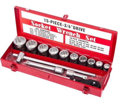 Количество предметов: 15 предметов. Габариты упаковки (ед) ДхШхВ: 0.513x0.082x0.153. Вес упаковки (ед): 5. Страна производства: Китай. Головки 3/4"DR, список: Головка 22, 24, 27, 30, 32, 36, 38, 41, 46, 50 мм. Дополнительно в наборе, 3/4"DR: Вороток Т-образный 450 мм Удлинитель 100, 200 мм.. Максимальный размер головки: 50. Минимальный размер головки: 22. Гарантия: 12 мес.. Присоединительный размер: 3/4". Система измерения: метрическая. Назначение: для автомобиля, профессиональный инструмент. Прочий инструмент: трещотка. Комплектация: жесткий кейс, набор головок. Материал: сталь. Комплектация головок: двеннадцатигранные. Назначение: для автомобиля, профессиональный инструмент. Материал: сталь. Комплектация: жесткий кейс, набор головок. Комплектация головок: двеннадцатигранные. Дополнительно в наборе: трещотка. Вес упаковки: 5 кг. Присоединительный размер: 3/4". Габариты упаковки (ДхШхВ): 0.513x0.082x0.153 м. Количество предметов: 15 предметов