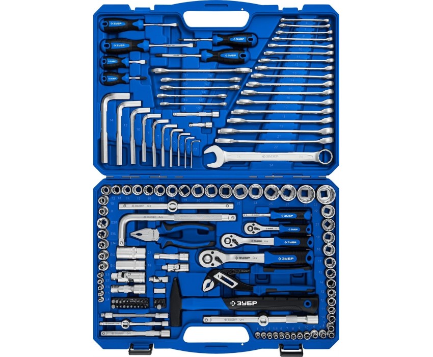 ЗУБР Универсал-142, 142 предм., (1/2″+ 3/8″+ 1/4″), универсальный набор инструмента, Профессионал (27670-H142)