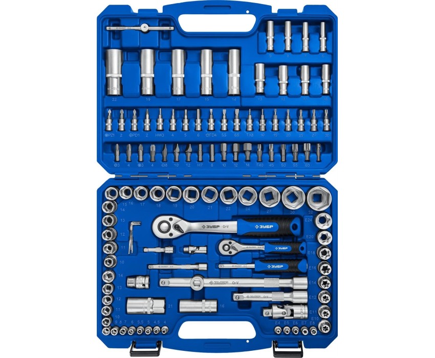 ЗУБР А-110, 110 предм., (1/2″ + 1/4″), универсальный набор инструмента, Профессионал (27635-H110)