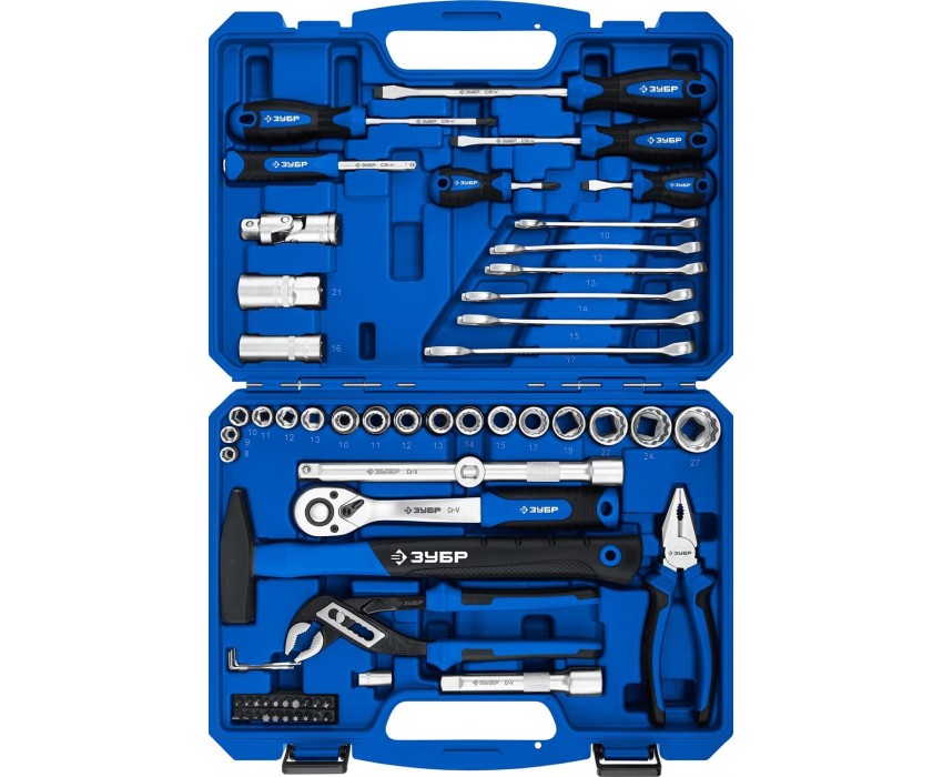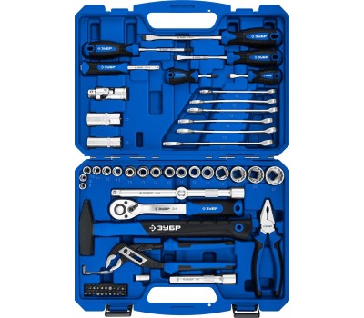 ЗУБР Универсал-63, 63 предм., (1/2″+ 1/4″), универсальный набор инструмента, Профессионал (27670-H58)