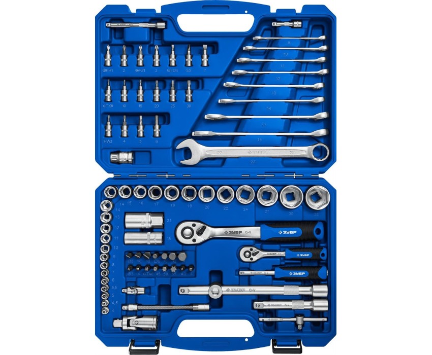 ЗУБР А-82, 82 предм.,(1/2″ + 1/4″), универсальный набор инструмента, Профессионал (27635-H82)