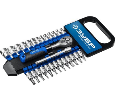 ЗУБР ТМ-28, 28 предм., (1/4″), набор торцовых головок, Профессионал (27645-H28)