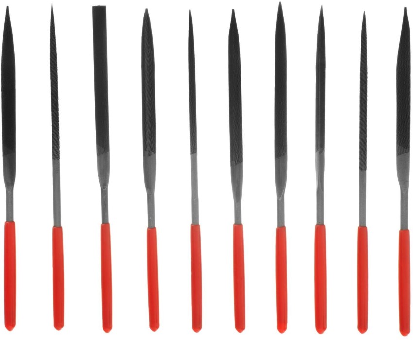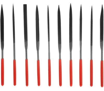 Набор Matrix 15816 из 10 надфилей размером 160 х 4 мм, с обрезиненными рукоятками, предназначен для опиливания поверхностей из древесины, стекла, керамики и других материалов. Надфили с разными профилями позволяют обрабатывать пазы, отверстия, внутренние углы, детали с округлыми и рельефными поверхностями. Инструменты необходимы в слесарной, столярной мастерской, пригодятся для занятий моделированием. Преимущества Прочность и долговечность — надфили изготовлены из конструкционной стали. Комфортная работа — обрезиненные рукоятки не выскальзывают из рук. Высокое качество обработки — на полотно каждого надфиля нанесена двойная перекрестная насечка. Быстрый поиск среди других инструментов — рукоятки красного цвета хорошо заметны. Удобное хранение и транспортировка — набор упакован в прозрачный чехол.