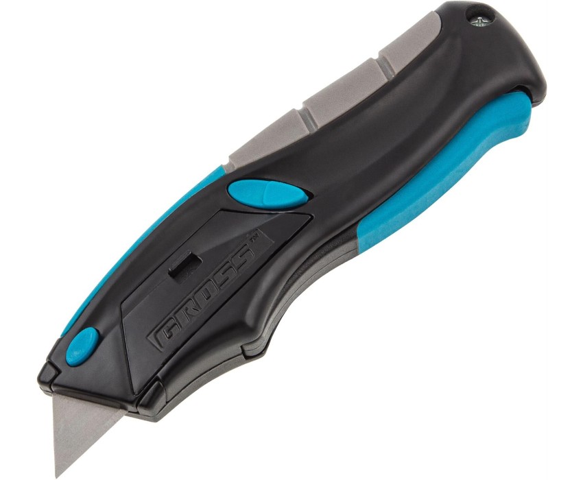 GROSS Нож ремонтно-монтажный, трехкомпонентная рукоятка, автовыброс, возврат лезвия, пистолетного типа, 170 мм, 5 запасных лезвий 78870