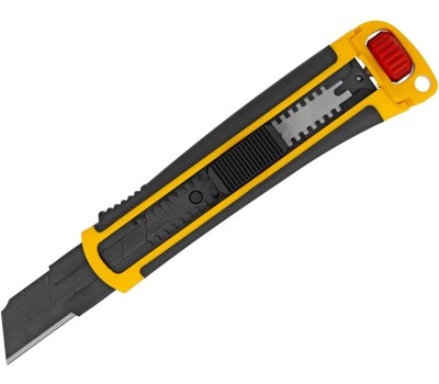 DENZEL Нож, 25 мм, сменное лезвие, SK4, корпус из ABS + TPR, торцевой зажим 78908