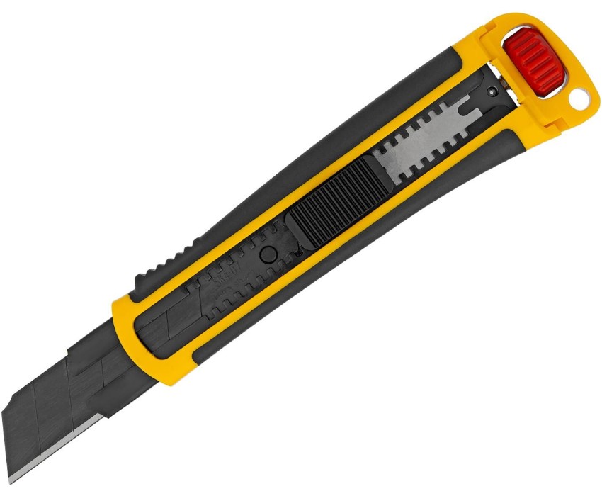 Нож Denzel 78908 выполнен в корпусе из ABS-пластика со вставками из термопластичной резины TPR, оснащен сменным лезвием шириной 25 мм, изготовленным из стали SK4 по технологии UltraSharp, и торцевым зажимом. Сверхострое выдвижное лезвие легко режет линолеум, ковролин, бумагу, обои, картон и другие листовые материалы. Нож будет полезен для проведения профессиональных ремонтных и отделочных работ, пригодится также в домашнем хозяйстве. Благодаря сегментной структуре полотна работоспособность ножа быстро восстанавливается: достаточно отломить затупившийся сегмент по линии насечки при помощи плоскогубцев или другого шарнирно-губцевого инструмента. Во избежание травм при обламывании необходимо использовать средства индивидуальной защиты (очки и перчатки)! Преимущества Прочность и износостойкость — лезвие изготовлено из японской инструментальной стали SK4, режущая кромка твердостью 65 HRC долго сохраняет остроту. Лазерная закалка лезвий UltraSharp — позволяет сделать заточку более острой и при этом долговечной. Повышенная прочность — за счет увеличенного количества материала корпуса (ABS + TPR) можно работать со значительным усилием без риска поломки ножа. Надежность — благодаря металлической направляющей лезвие не сломается даже при интенсивном использовании. Выполнение тяжелых и точных работ — лезвие жестко фиксируется при помощи дополнительного торцевого зажима. Комфортная работа — обрезиненный корпус не выскальзывает из руки.