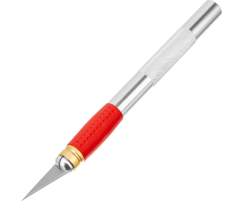 Нож Matrix 78855 с двухкомпонентной рукояткой и 5 запасными лезвиями, используется для дизайнерских работ: фигурного вырезания, изготовления мелких декоративных элементов. Он эффективно справляется с резкой бумаги и обоев, позволяя получить художественный результат. Преимущества Лезвие в форме пера выполнено из углеродистой стали 60, закалено и заточено, поэтому долго сохраняет остроту. Специальный защитный колпачок и выдвижное лезвие повышают безопасность транспортировки и эксплуатации. В комплекте с ножом идут 5 запасных лезвий, поэтому их не придется покупать дополнительно. Корпус выполнен из алюминия с нескользящей резиновой вставкой для удобства работы.