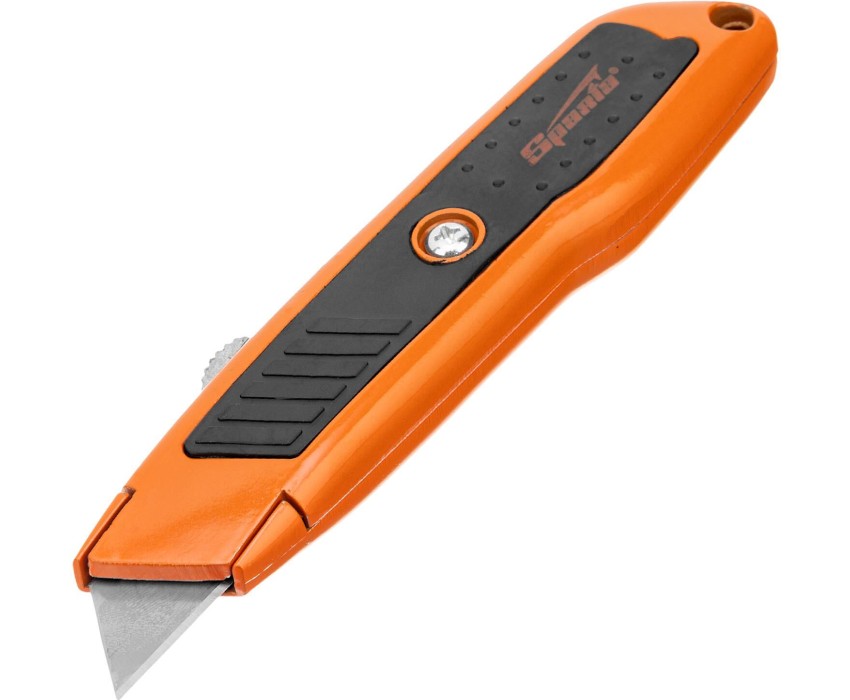 Нож Sparta 78978 с выдвижным трапециевидным лезвием, выполненные в двухкомпонентном корпусе, будет полезен как в быту, так и на строительной площадке при выполнении облицовочных и ремонтных работ. С его помощью можно резать картон, кожу, обои, линолеум, срезать монтажную пену. С выдвижным лезвием удобно работать — достаточно настроить его длину с помощью бегунка. Преимущества Лезвие из стали 60 характеризуется прочностью, что положительно сказывается на его ресурсе и надежности. Благодаря двухкомпонентному корпусу с рифлением нож не проскальзывает в руке. При работе с ножом руки не устают, т.к. он весит всего 76 г.