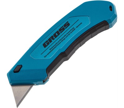 GROSS Нож, 130 мм, алюминиевый корпус, выдвижное трапециевидное лезвие 18 мм (SK-5) клипса для ремня, 4 лезвия 78899
