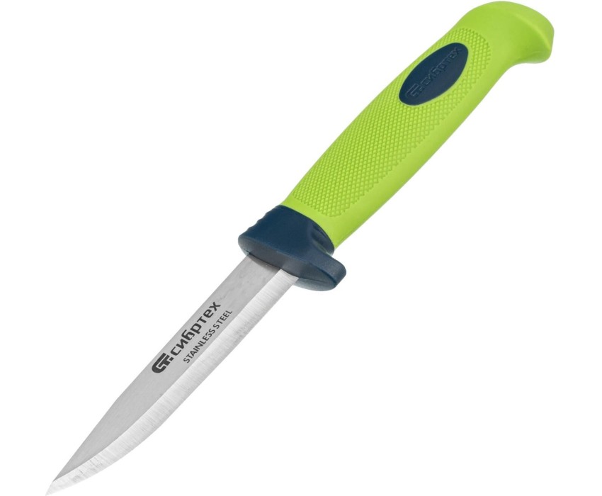 СИБРТЕХ Нож универсальный с чехлом, обрезиненная рукоятка, 220 мм, лезвие 100 мм 79015