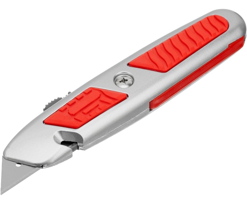 Нож Matrix 78967 с выдвижным трапециевидным лезвием и отделением для лезвий, в металлическом корпусе, режет бумагу, картон, кожу, линолеум и обои. Может применяться в качестве стропореза: для этого в корпусе предусмотрена специальная выемка. Лезвие сменное, артикул совместимых расходников 793555. Металлический корпус выдерживает значительные усилия. Нож будет полезен во время проведения строительных и отделочных работ, а также пригодится в быту. Преимущества Прочность и высокий ресурс — лезвие изготовлено из стали 60 толщиной 0,6 мм. Быстрое восстановление режущей способности — трапециевидное полотно заострено с двух сторон: если оно затупится, достаточно его перевернуть. Удобное хранение расходников — в корпусе имеется отсек для лезвий. Эргономичность — благодаря боковым рельефным вставкам инструмент не выскальзывает из руки.
