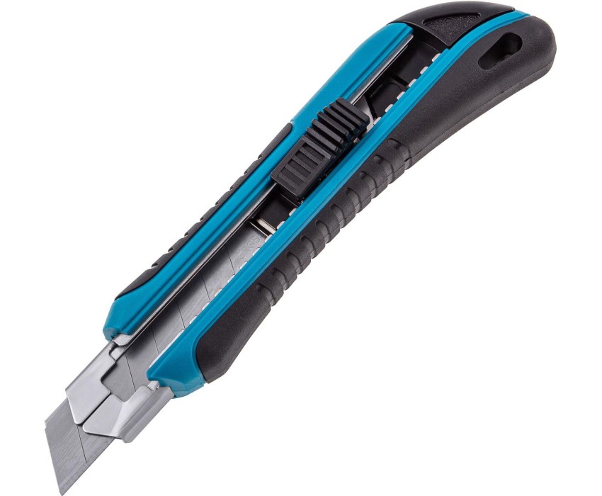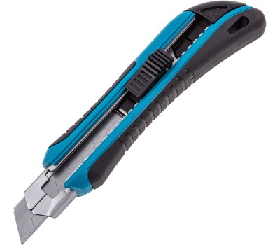 Нож Gross 78893 длиной 170 мм, с обрезиненным ABS-корпусом, выдвижным сегментированным лезвием шириной 18 мм из стали SK-5 и металлической направляющей, с 5 лезвиями, предназначен для профессионального использования в ходе ремонтно-монтажных работ. Пригодится также для решения бытовых задач. Нож легко режет бумагу, картон, кожу, поможет раскроить линолеум или обои. Благодаря металлической направляющей инструмент не сломается даже при работах со значительным усилием. Преимущества Износостойкость — лезвие из высококачественной японской стали SK-5 толщиной 0,6 мм долго сохраняет режущую способность. Долговечность — корпус изготовлен из ударопрочного ABS-пластика, поэтому инструмент устойчив к механическим воздействиям. Высокий рабочий ресурс — когда сегмент затупится, его достаточно отломить, после чего работу можно продолжать. Продуманная конструкция — благодаря рифленому упору для большого пальца лезвие легко выдвигается и задвигается. Эргономичность — резиновые вставки под пальцы на корпусе обеспечивают удобный хват и препятствуют выскальзыванию инструмента из руки. Расходники в комплекте — к ножу прилагается 5 запасных лезвий, которых хватит надолго.