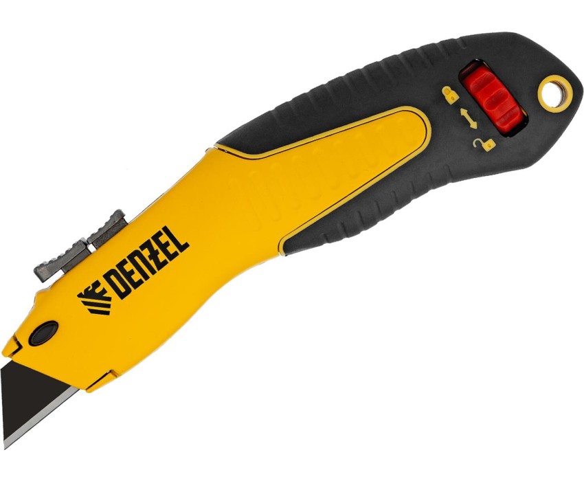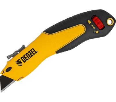 DENZEL Нож, 19мм, сменное трапециевидное лезвие, SK4, алюминиевый корпус, торцевой зажим 78916