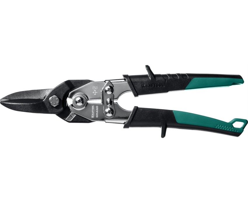 Профессиональные ножницы Kraftool GRAND изготовлены из высококачественной инструментальной стали, соответствуют самым высоким техническим требованиям. Обладают повышенным ресурсом и обеспечивают длительную и качественную работу Преимущества Усиленная двухрычажная конструкция Кованые губки из высококачественной хромомолибденовой стали Индукционная закалка лезвий до твёрдости 62-65 HRC Режущие кромки с насечкой предотвращают проскальзывание материала при выполнении реза Двухрычажная конструкция шарнира увеличивает ружещую способность на 40%. Двухкомпонентные рукоятки обеспечивают удобствои надежный хват при работе Использование для точного прямого, левого, правого и фигурного резов для сталей повышенной твердости, нержавеющей стали и цветных металлов