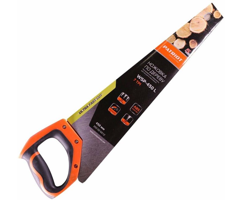 Ножовка PATRIOT WSP-450L, по дереву, 7 TPI крупный зуб, 3-х сторонняя заточка, 450мм