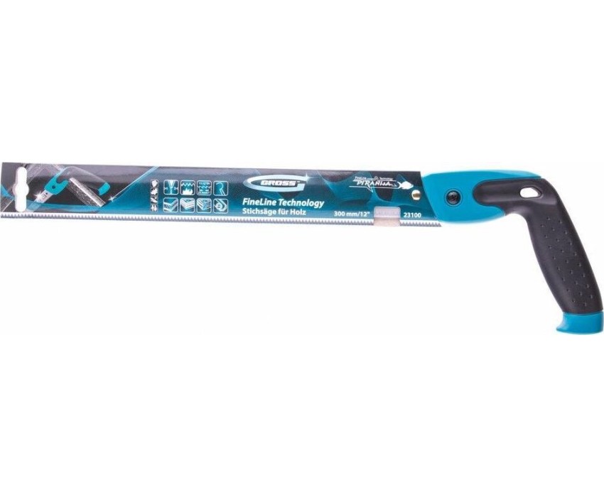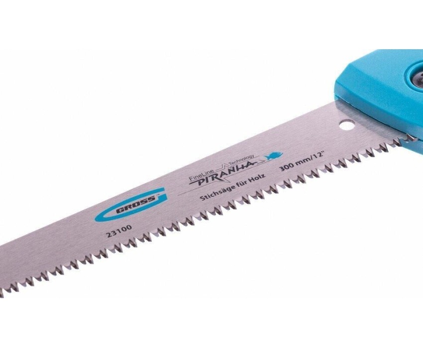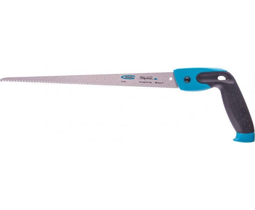 GROSS Ножовка по дереву Piranha, выкружная, 300 мм/12", 11-12 TPI, каленый зуб 3D, двухкомпонентная рукоятка 23100