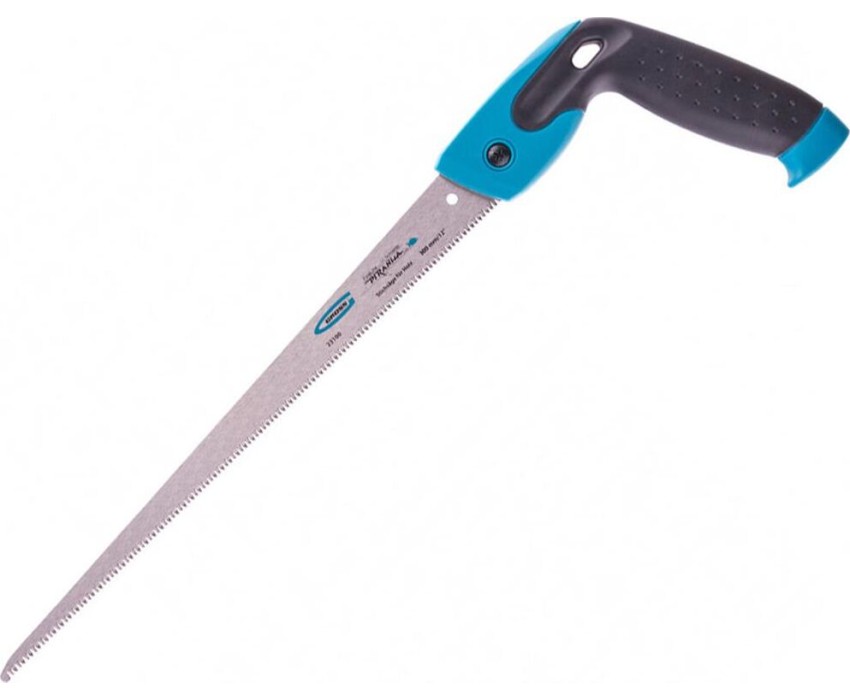 Выкружная ножовка по дереву Gross PIRANHA 23100, 300 мм / 12 дюймов, 11-12 TPI, с каленым зубом 3D и двухкомпонентной рукояткой, предназначена для криволинейного реза листовых заготовок из фанеры, ДСП, ДВП, ламината, МДФ, а также пенополистирола и полиуретана. Мелкие зубья с шагом 11-12 TPI обеспечивают ровный рез без сколов. Благодаря тонкому маневренному полотну удается придерживаться заданного контура при распиловке. Ножовку используют при выполнении профессиональных столярных работ.Преимущества Полотно из японской стали SK-5 обладает механической прочностью и долговечностью. Зубья с трехгранной заточкой обеспечивают высокую производительность ножовки. Закалка зубьев токами высокой частоты придает им твердость и износостойкость, поэтому инструмент обладает увеличенным ресурсом работоспособности. Поверхность полотна покрыта лаком, защищающим инструмент от коррозии. Двухкомпонентная эргономичная рукоятка удобно ложится в руку, снижая нагрузку на кисть при интенсивном использовании.