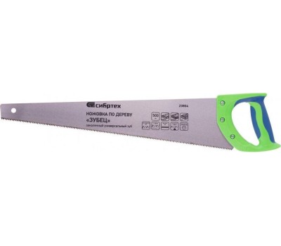 Ножовка СИБРТЕХ Ножовка по дереву "Зубец", 500 мм, 7-8 TPI, каленый зуб 2D, двухкомпонентная рукоятка 23804