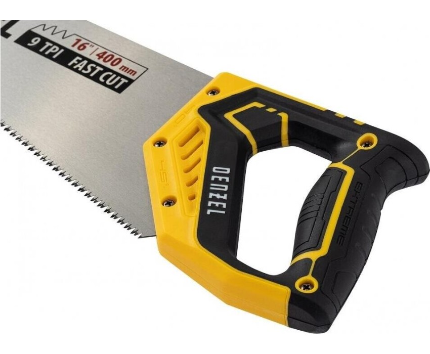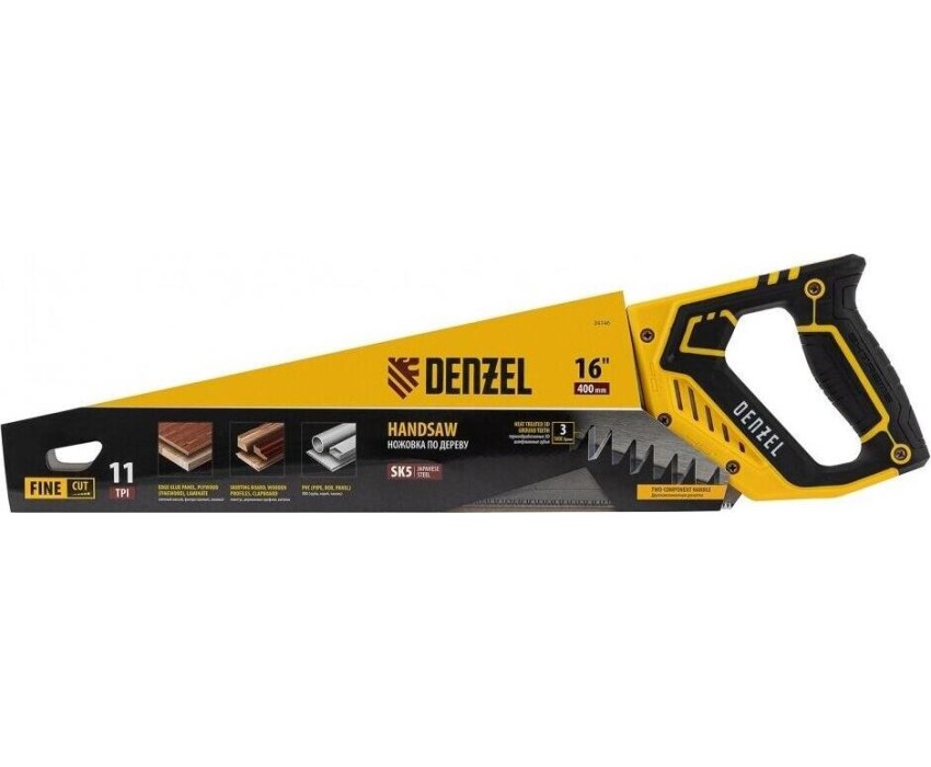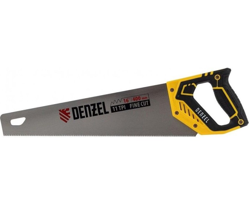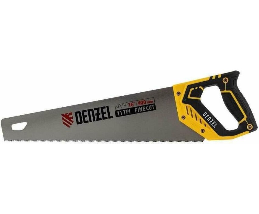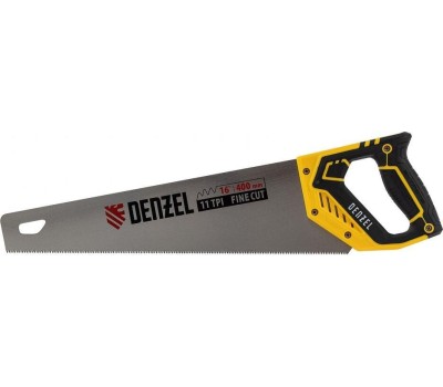 Ножовка DENZEL Ножовка по дереву, 400 мм, 11 TPI, зуб 3D, двухкомпонентная рукоятка 24146