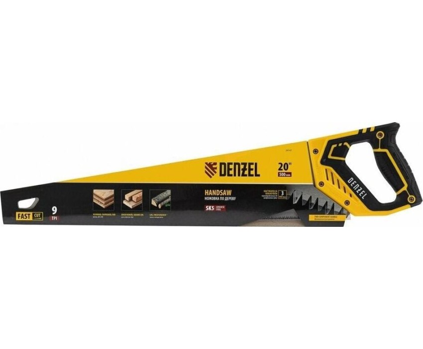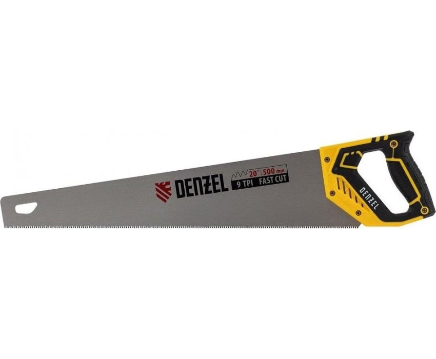 Ножовка DENZEL Ножовка по дереву, 500 мм, 9 TPI, зуб 3D, двухкомпонентная рукоятка 24147